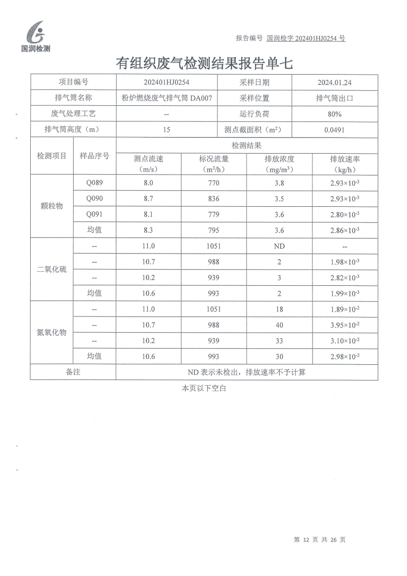泰安啟程車輪制造有限公司2024年1月份環(huán)境污染物排放檢測報告