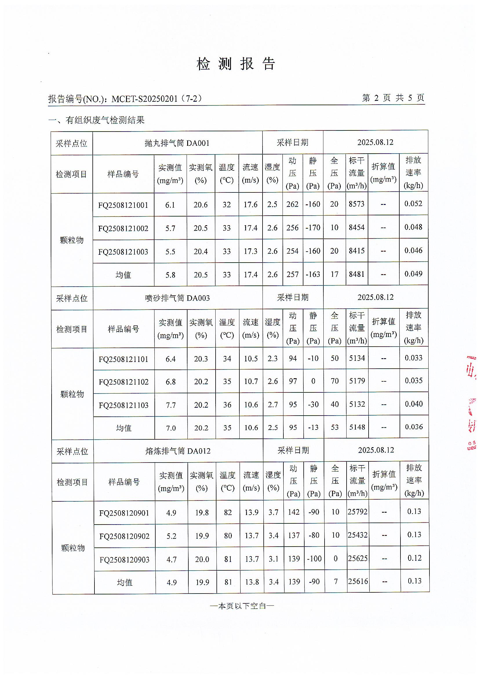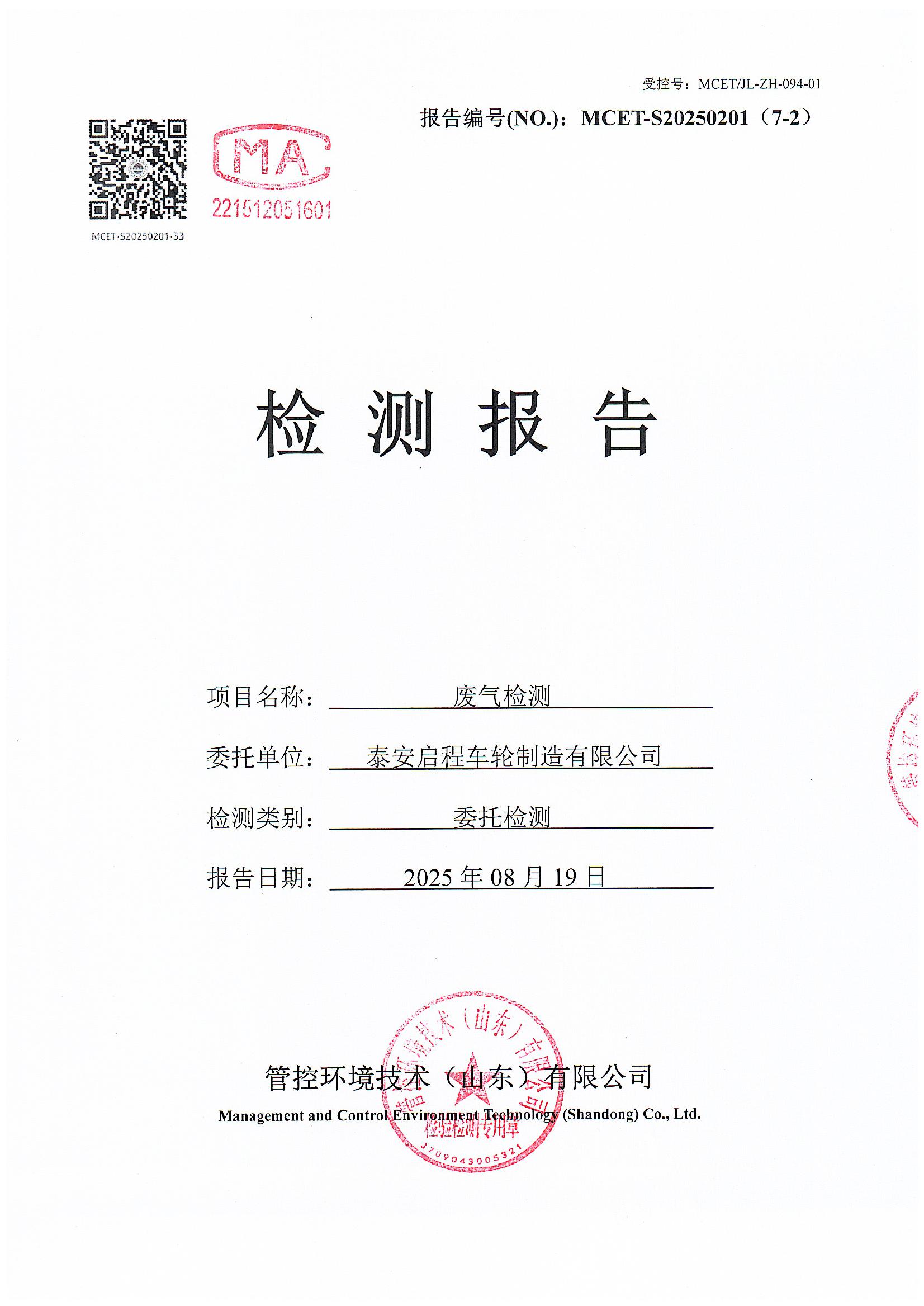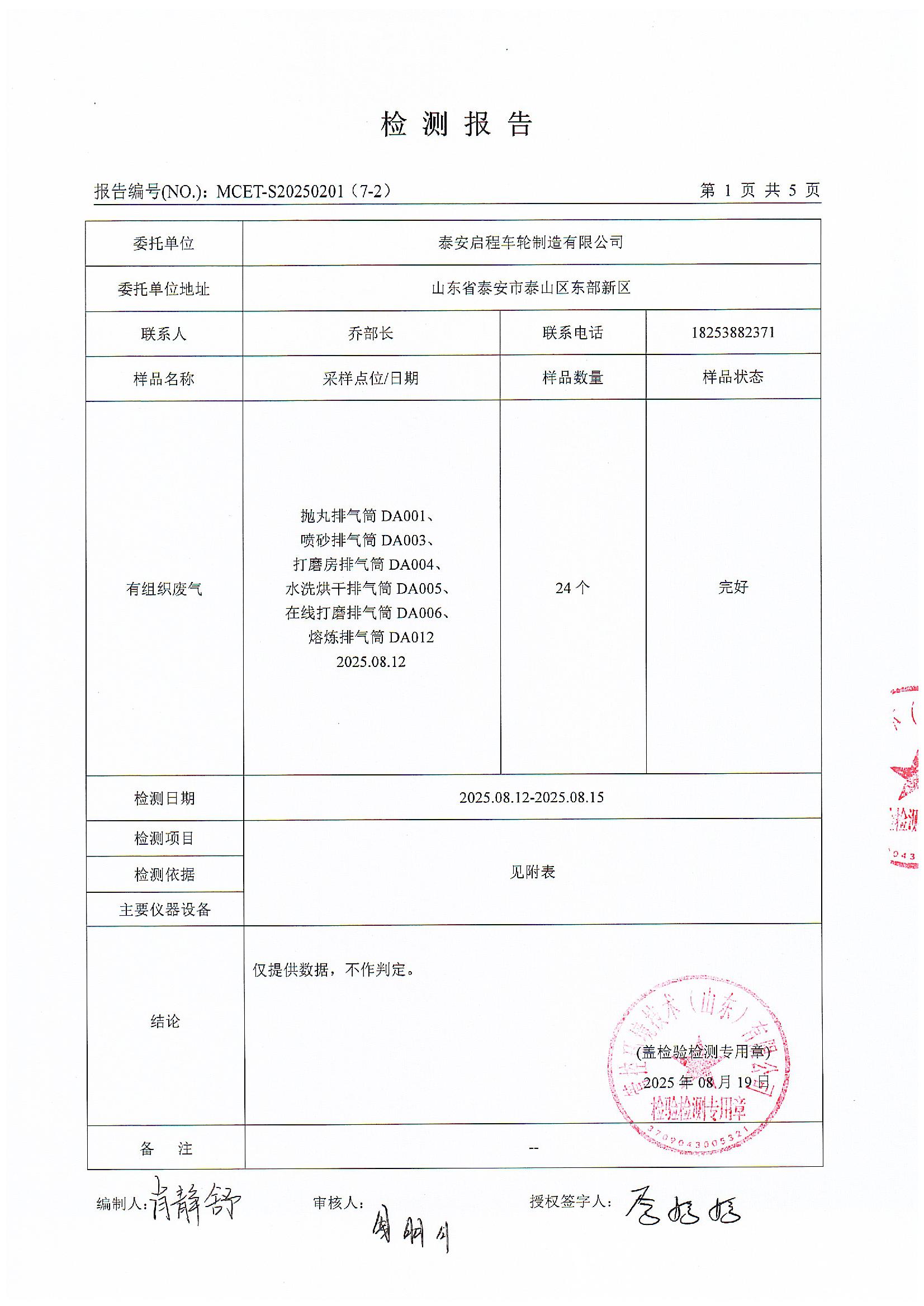泰安啟程車輪制造有限公司2025年8月份環(huán)境污染物排放檢測報(bào)告
