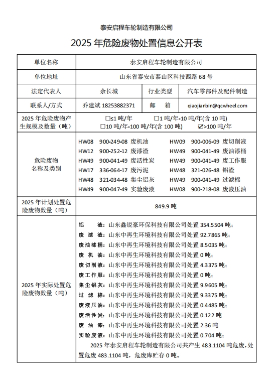 2025年危險(xiǎn)廢物處置信息公開(kāi)