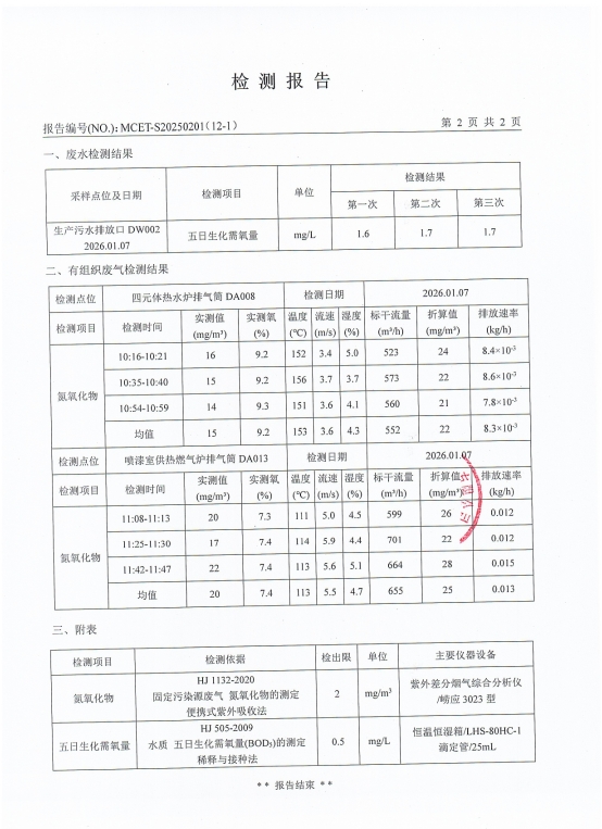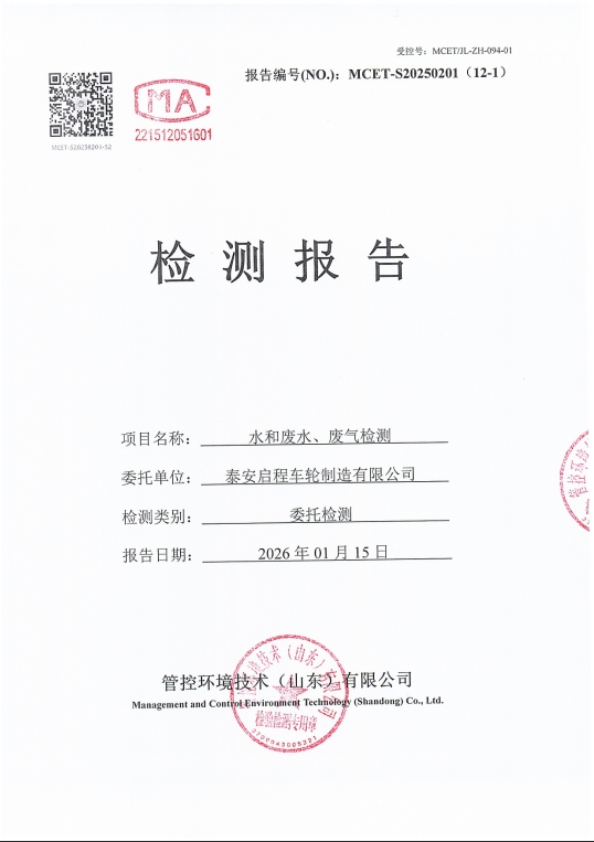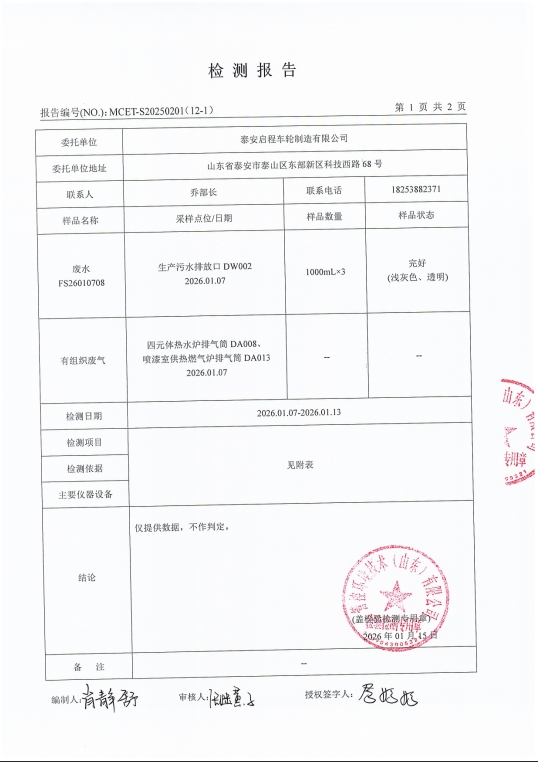 泰安啟程車輪制造有限公司2026年1月份環(huán)境污染物排放檢測報告