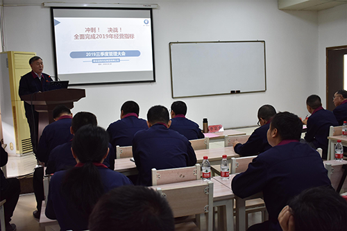 公司黨支部書記、總經理李家虎作了題目是《沖刺,決戰(zhàn),全面完成2019年經營目標》的三季度工作總結報告,從行業(yè)概況、經營指標、產品質量、訂單完成、發(fā)貨及委外等情況對啟程2019年前三季度生產經營及重點工作完成情況進行了總結,對四季度經營目標的完成進行了安排部署。他號召大家,不退不讓,堅決完成四季度目標。