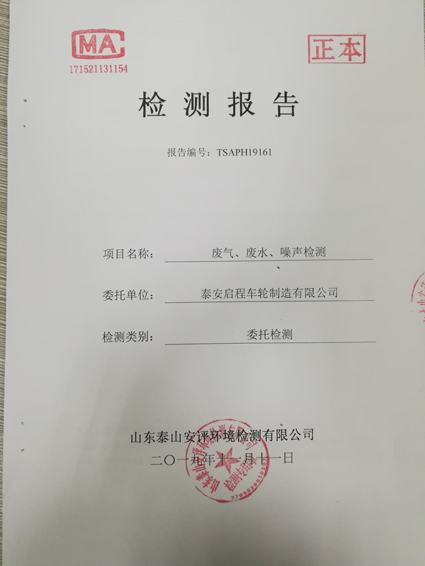 泰安啟程車輪制造有限公司2019年10月份檢測(cè)報(bào)告