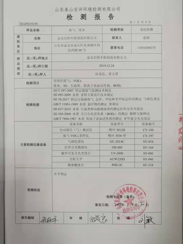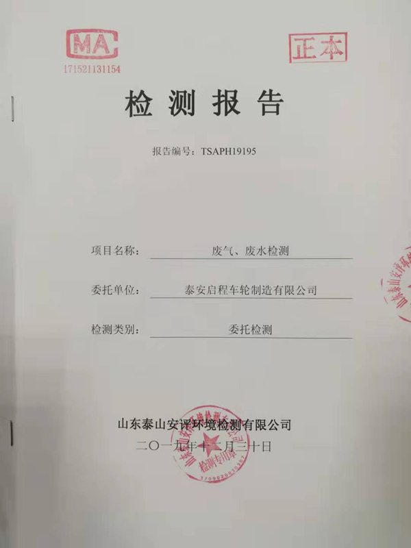 泰安啟程車(chē)輪制造有限公司2019年12月份檢測(cè)報(bào)告
