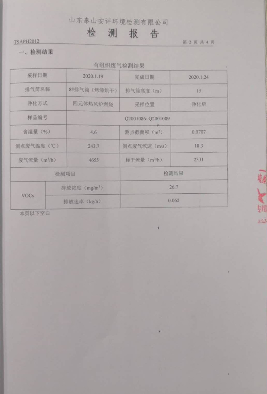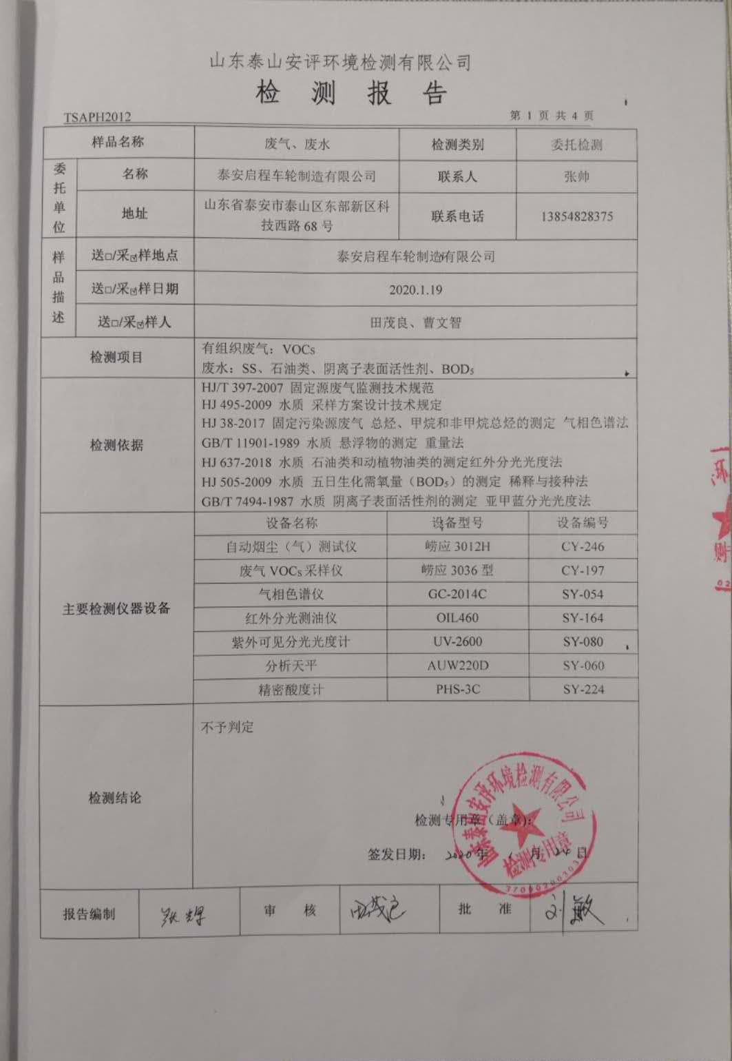 泰安啟程車輪制造有限公司2020年1月份環(huán)境污染物排放檢測報告