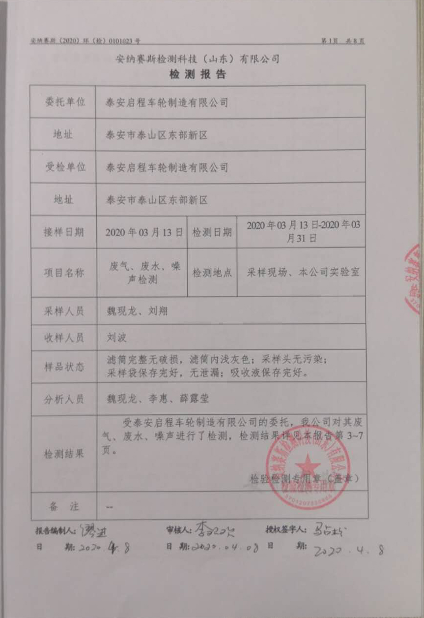 泰安啟程車輪制造有限公司2020年3月份環(huán)境污染物排放檢測報(bào)告