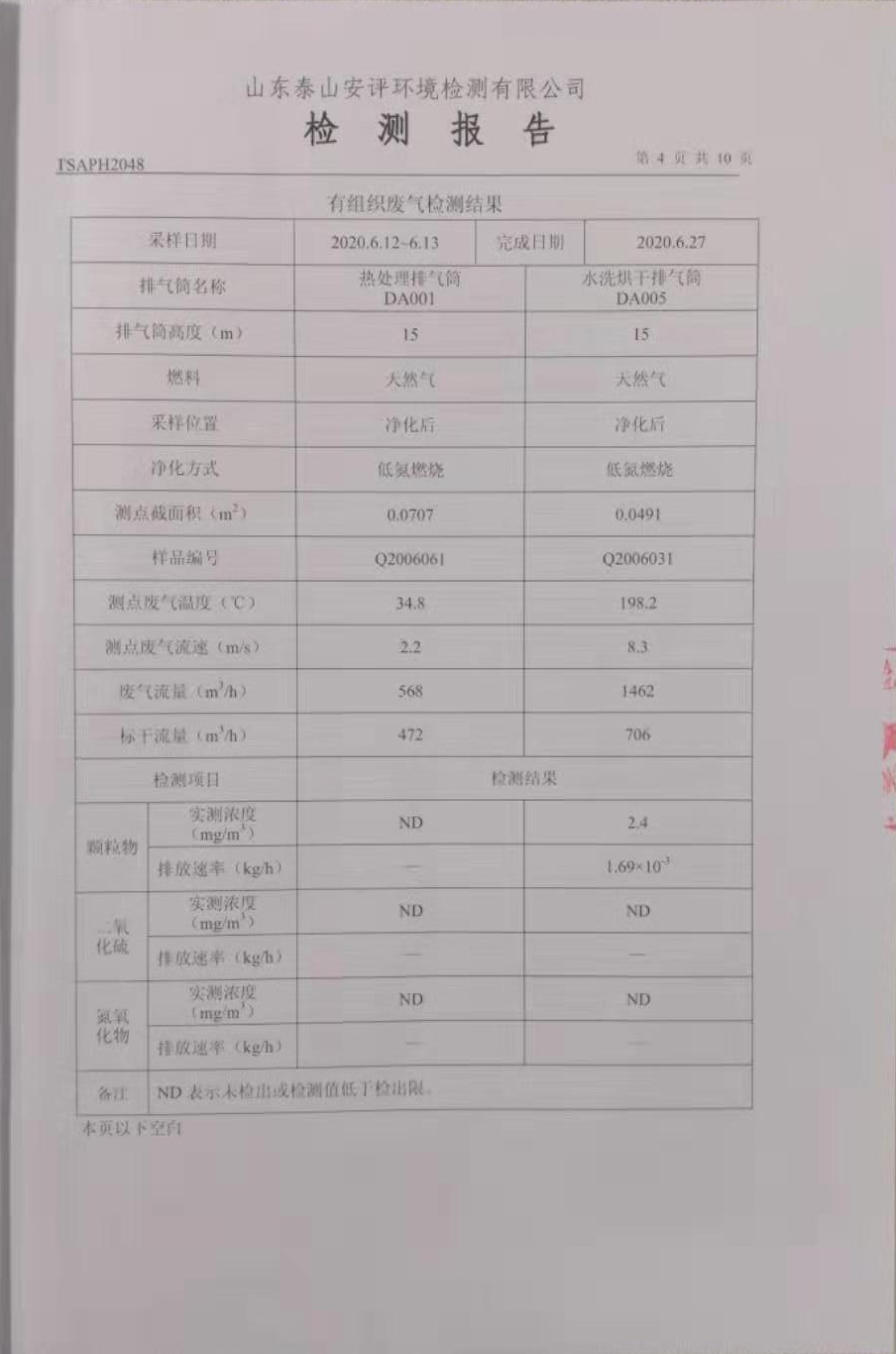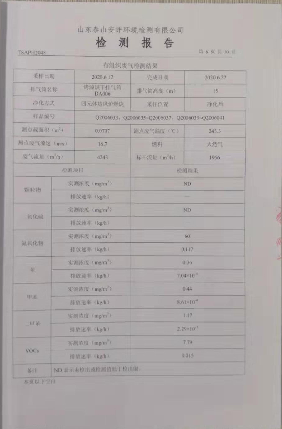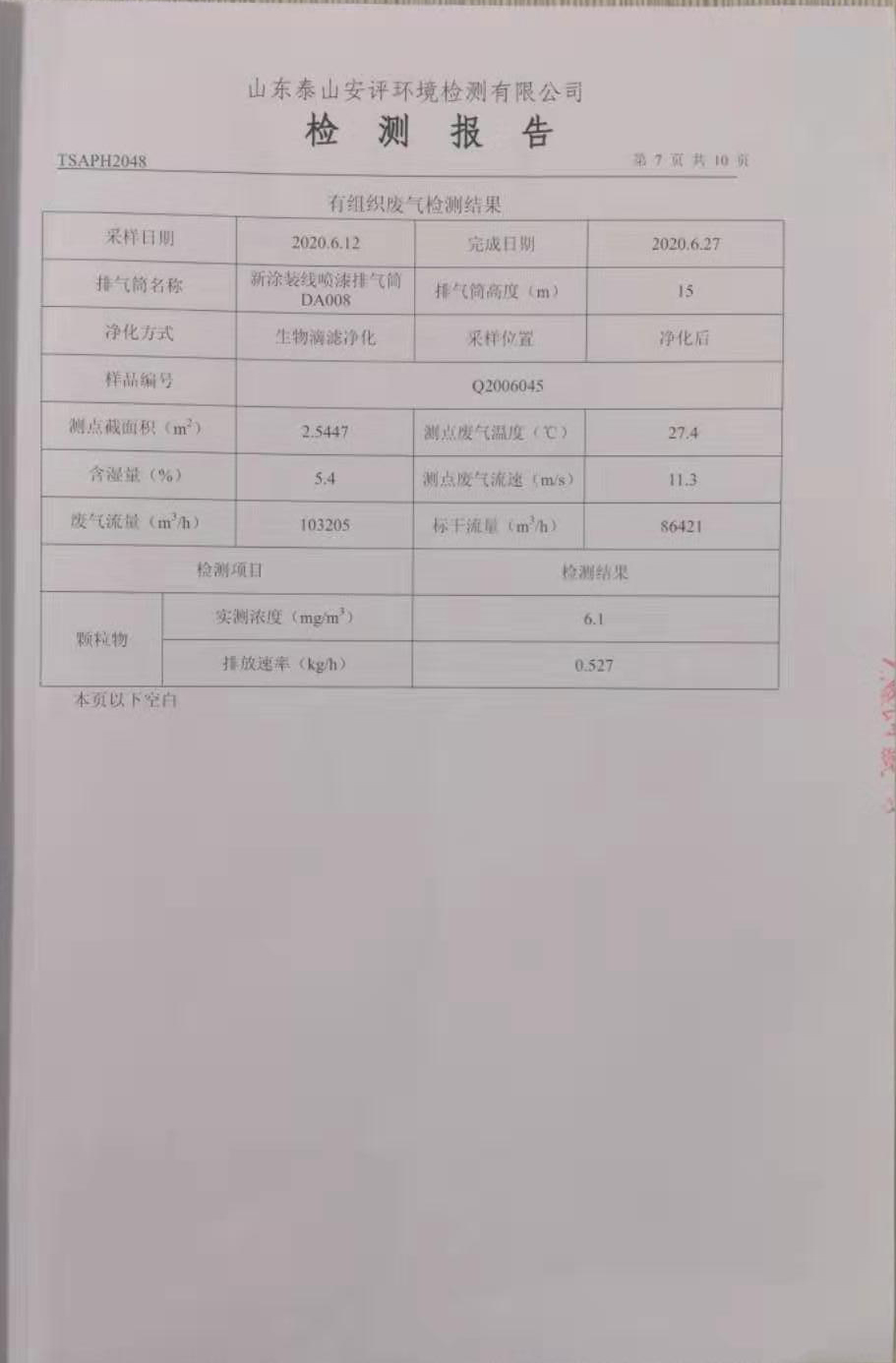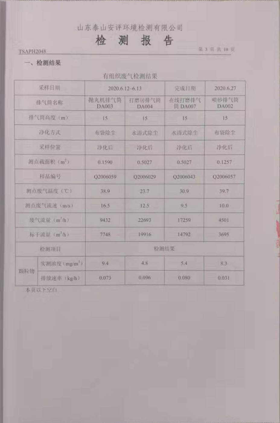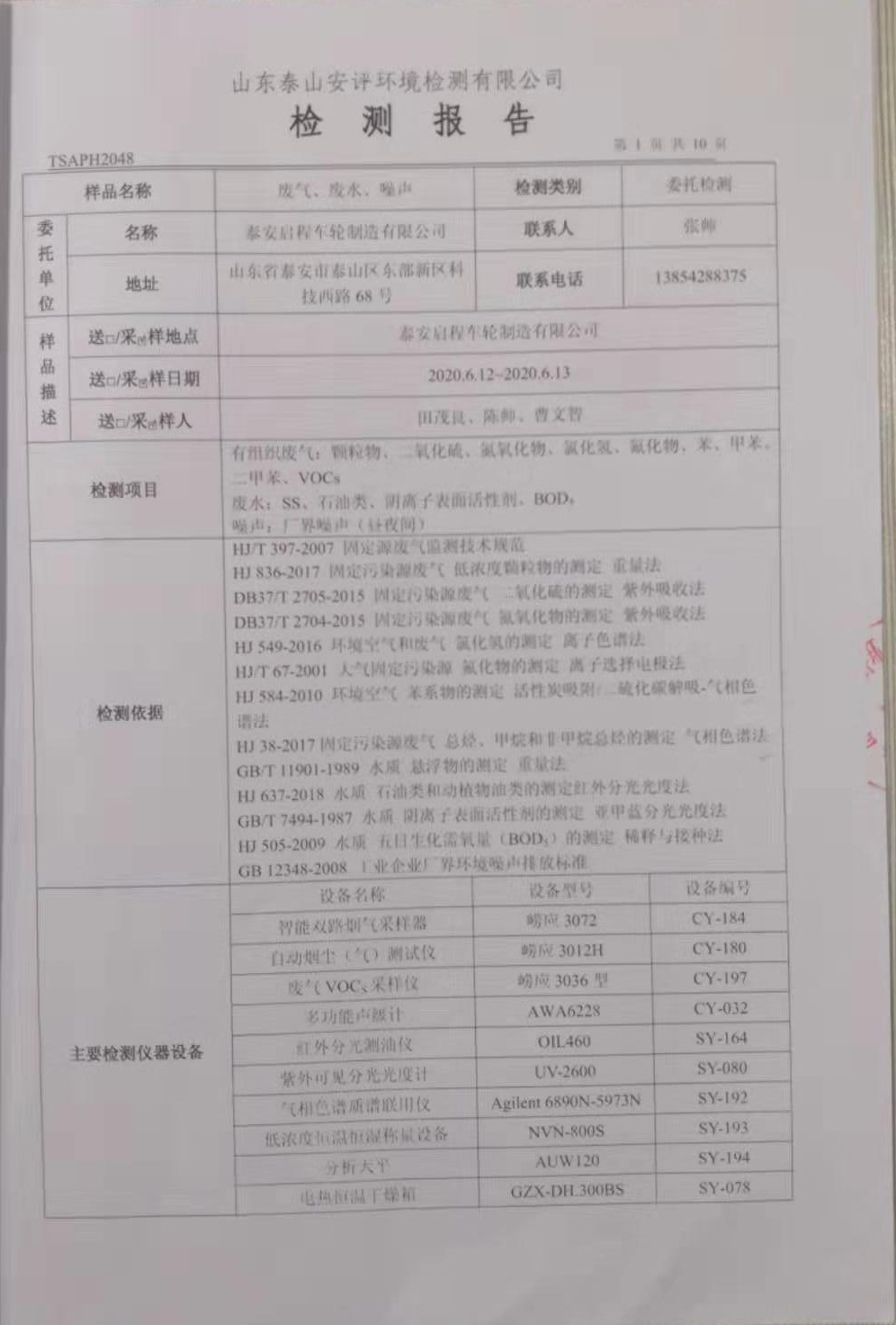泰安啟程車輪制造有限公司2020年6月份環(huán)境污染物排放檢測(cè)報(bào)告