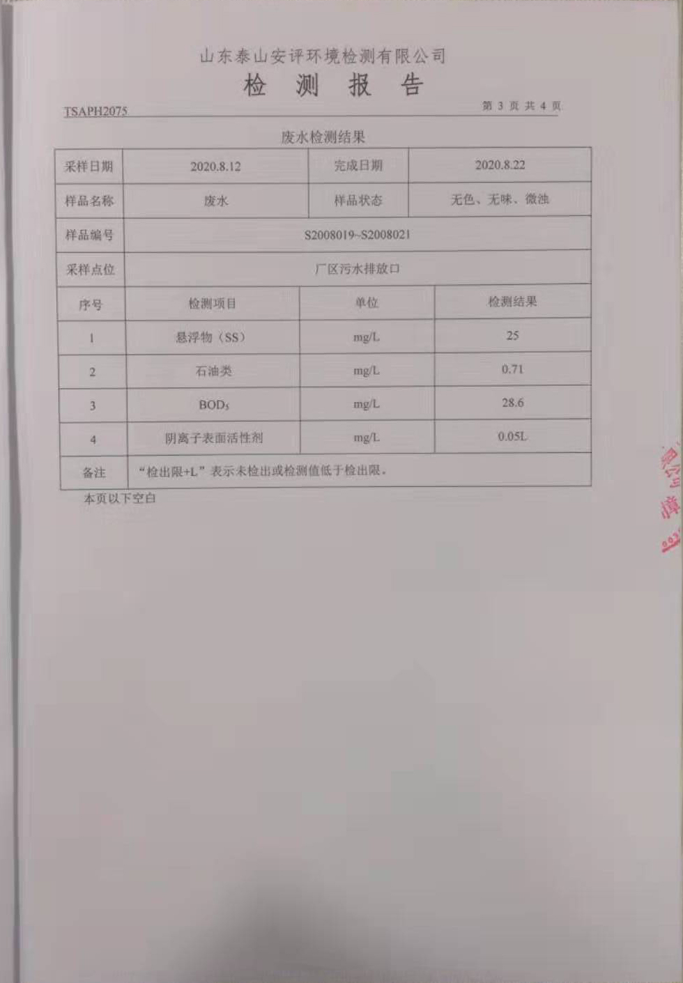 泰安啟程車輪制造有限公司2020年8月份環(huán)境污染物排放檢測報告
