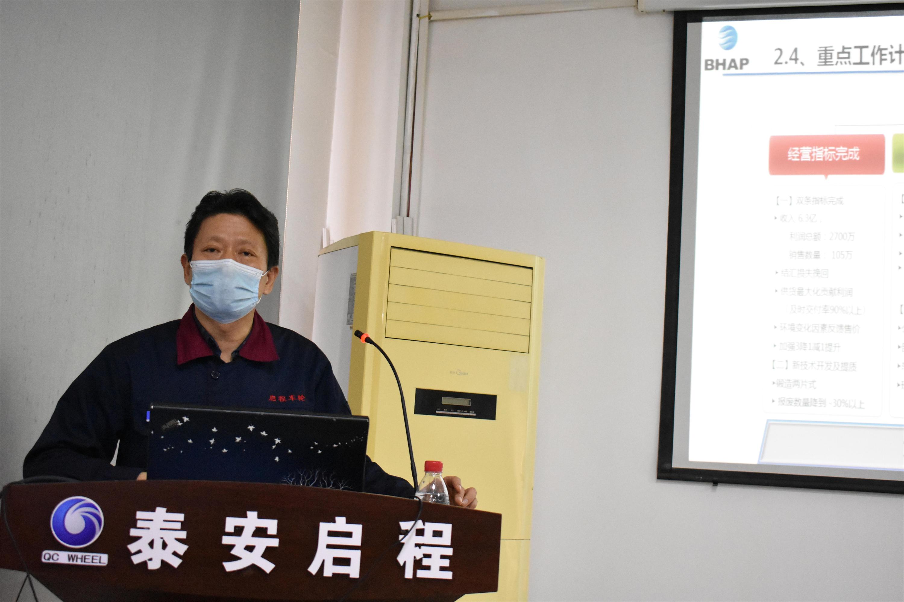 公司總經(jīng)理沈載根代表公司領(lǐng)導(dǎo)班子作了題目是《鍥而不舍 金石可鏤》的工作報(bào)告,從安全環(huán)保、KPI指標(biāo)、三降一減一提升項(xiàng)目、技改投資等重點(diǎn)工作完成的各個(gè)方面,對(duì)2020年泰安啟程生產(chǎn)經(jīng)營(yíng)完成情況進(jìn)行總結(jié),對(duì)2021年重點(diǎn)工作進(jìn)行了部署。