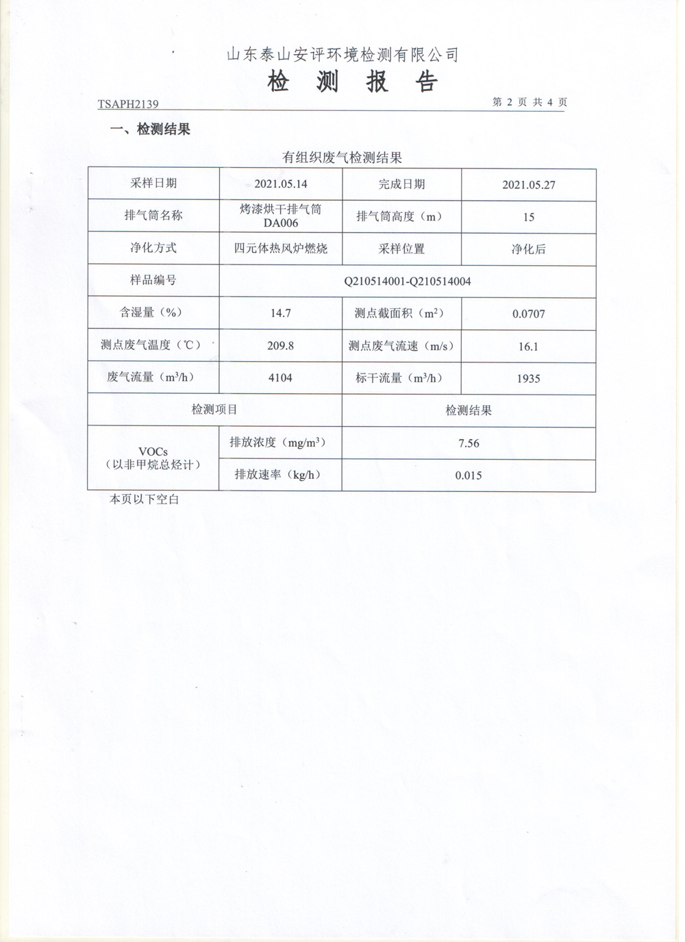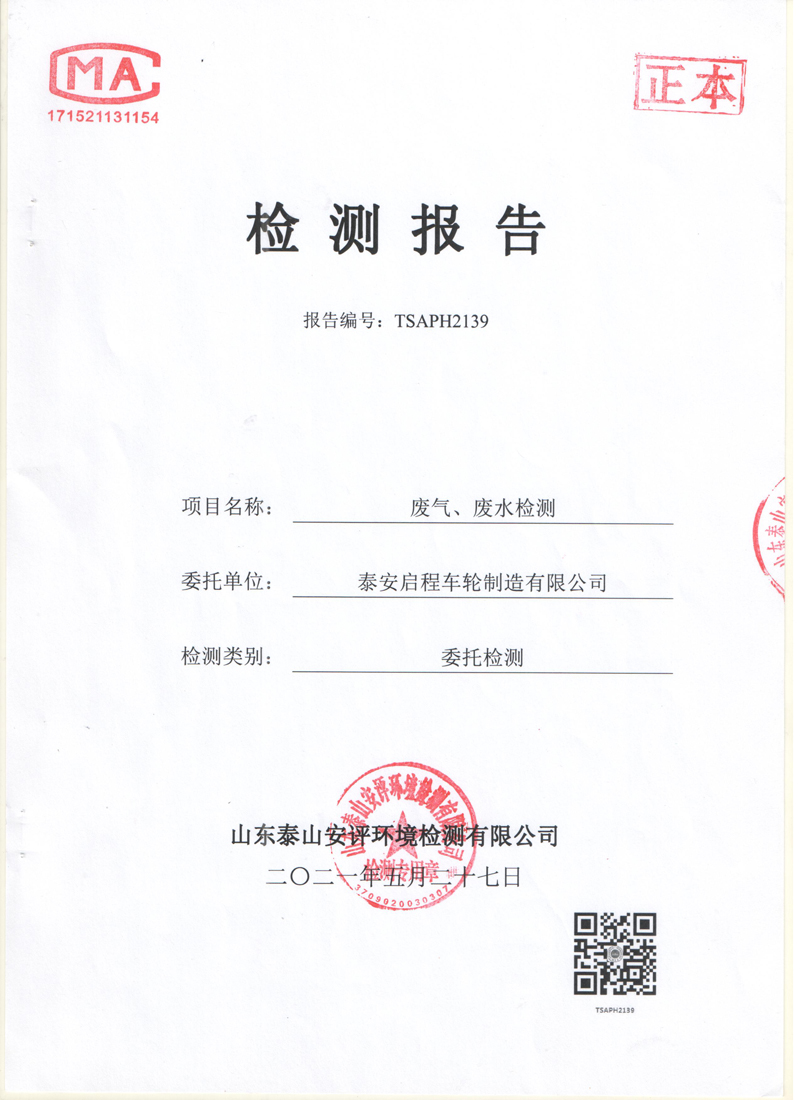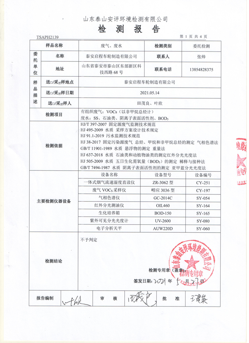 泰安啟程車(chē)輪制造有限公司2021年5月份環(huán)境污染物排放檢測(cè)報(bào)告