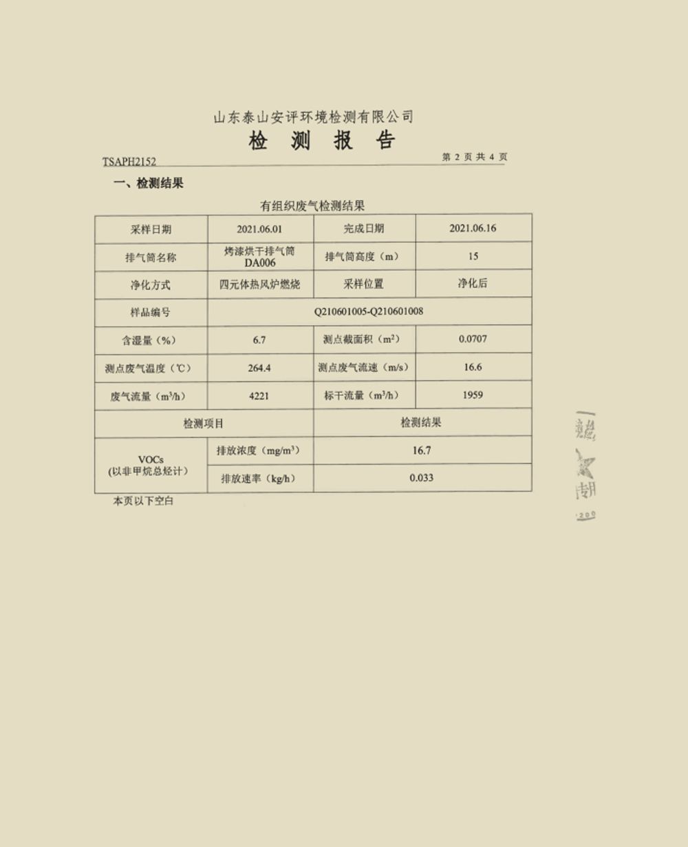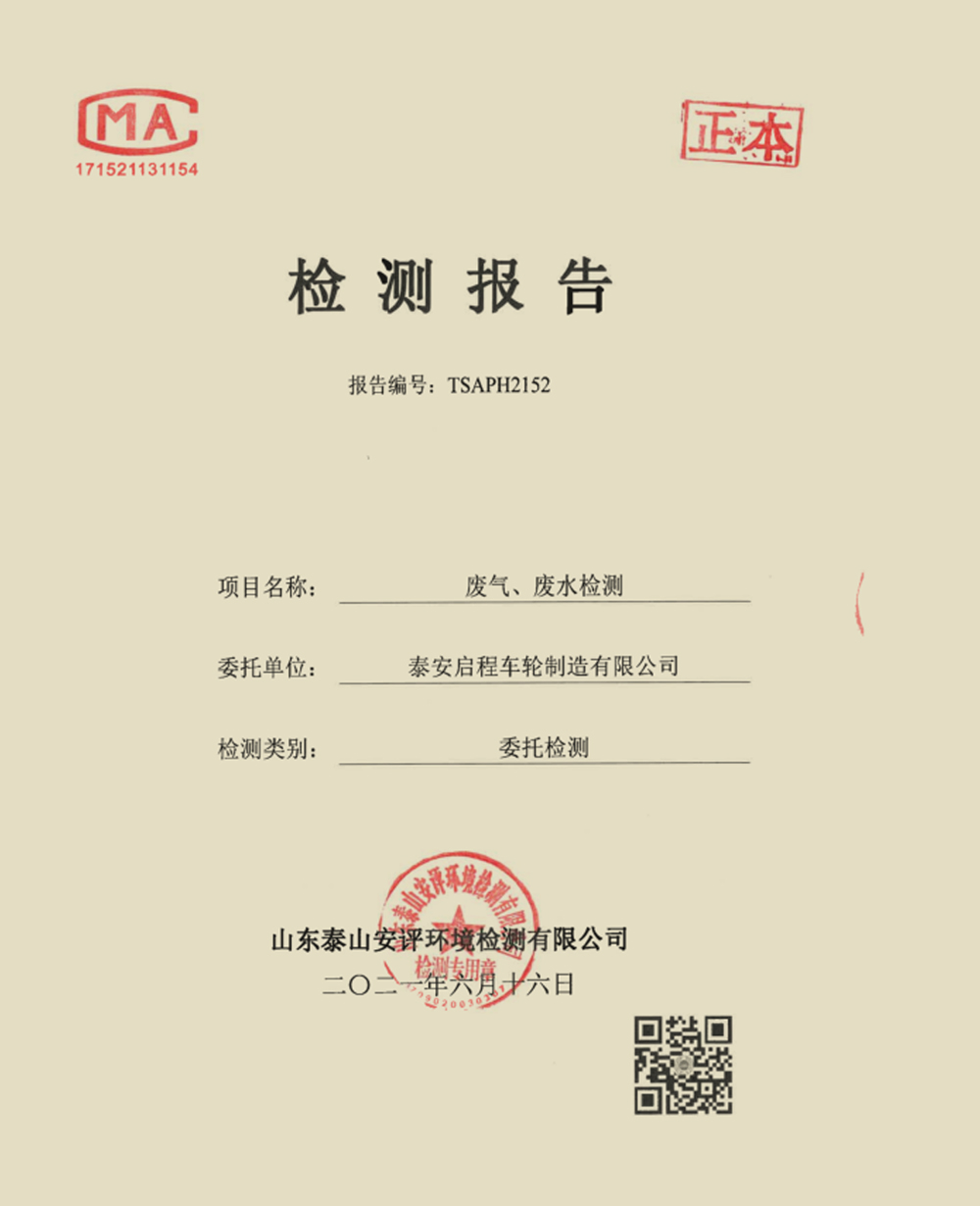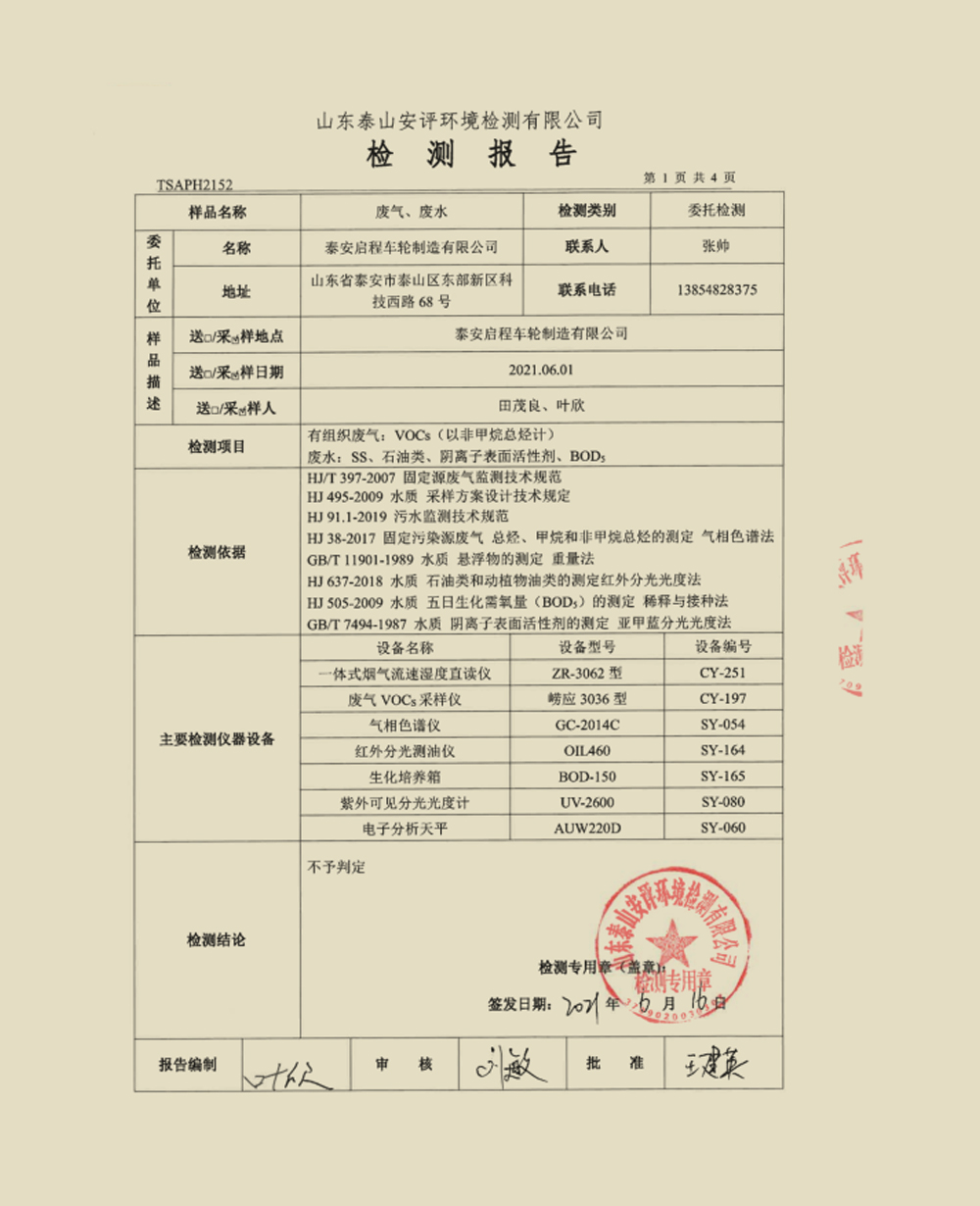 泰安啟程車輪制造有限公司2021年6月份環(huán)境污染物排放檢測報告