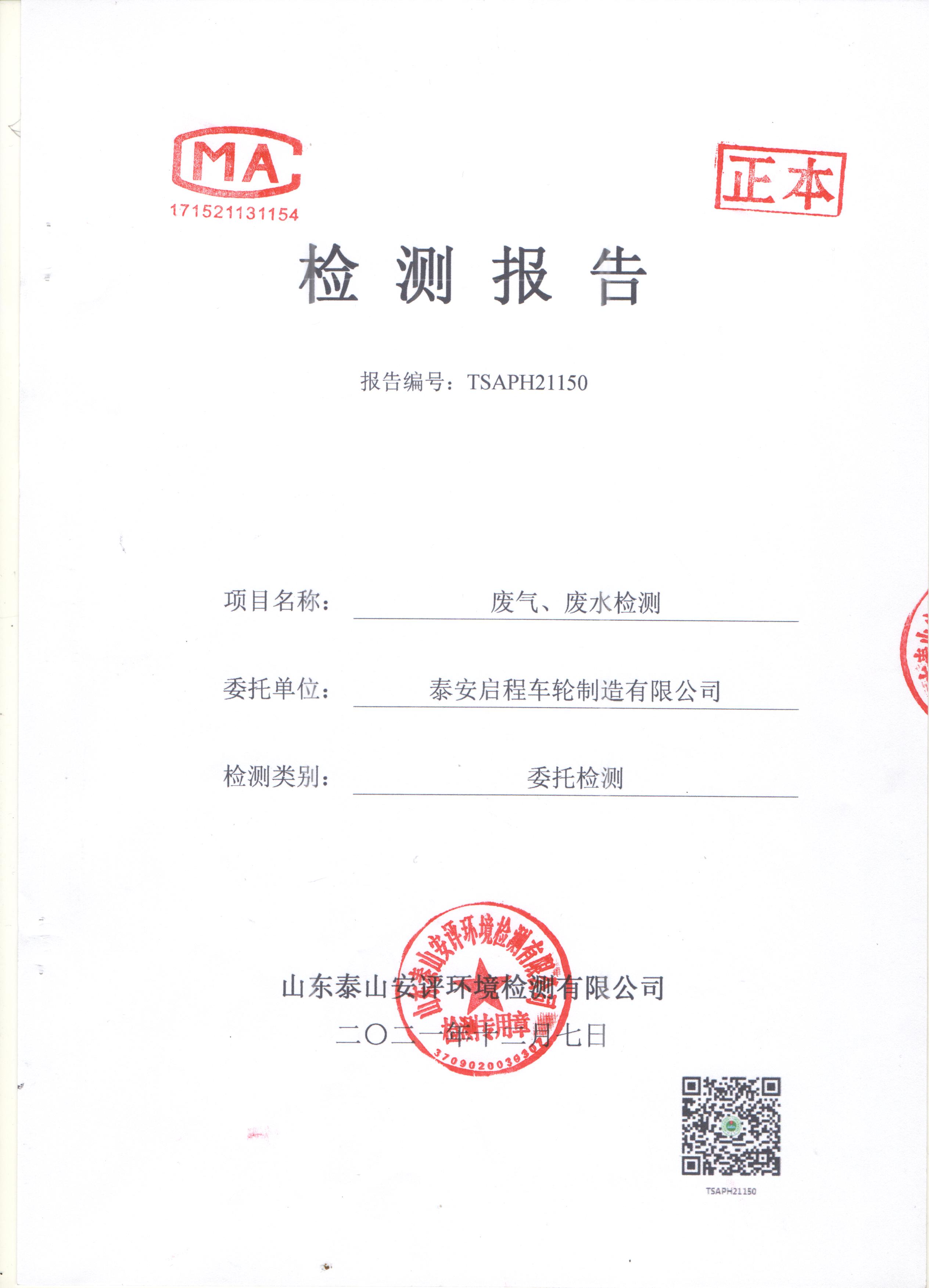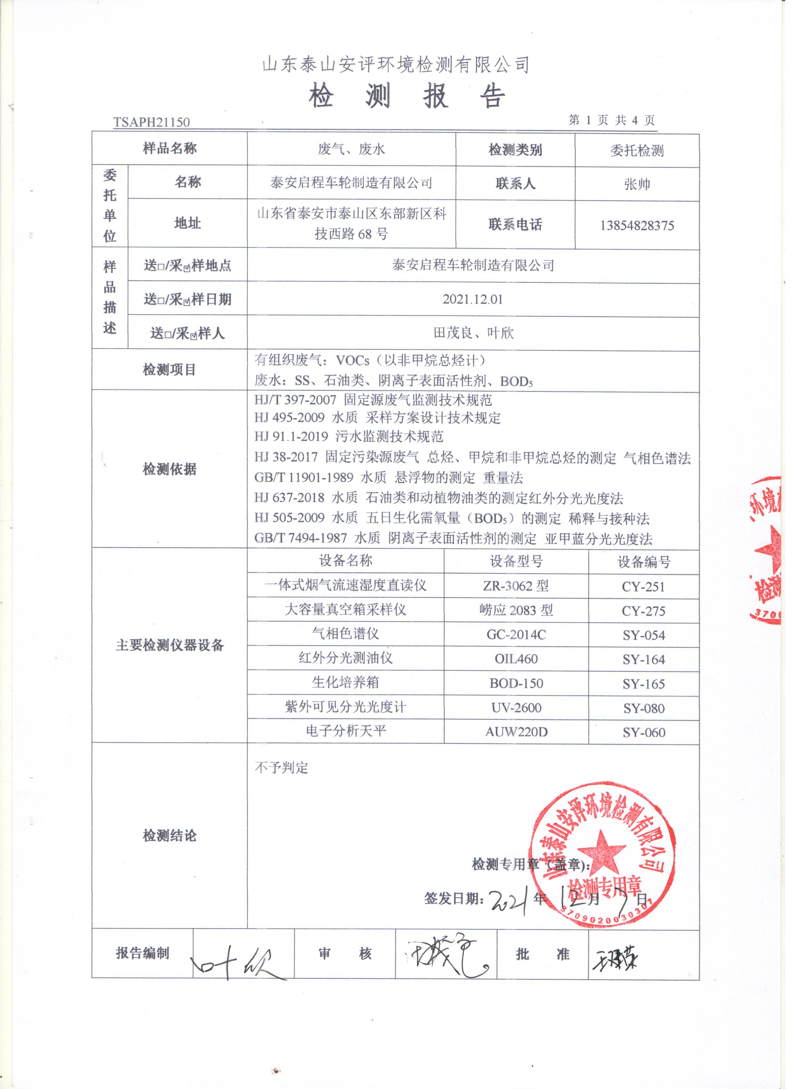 泰安啟程車輪制造有限公司2021年12月份環(huán)境污染物排放檢測報告