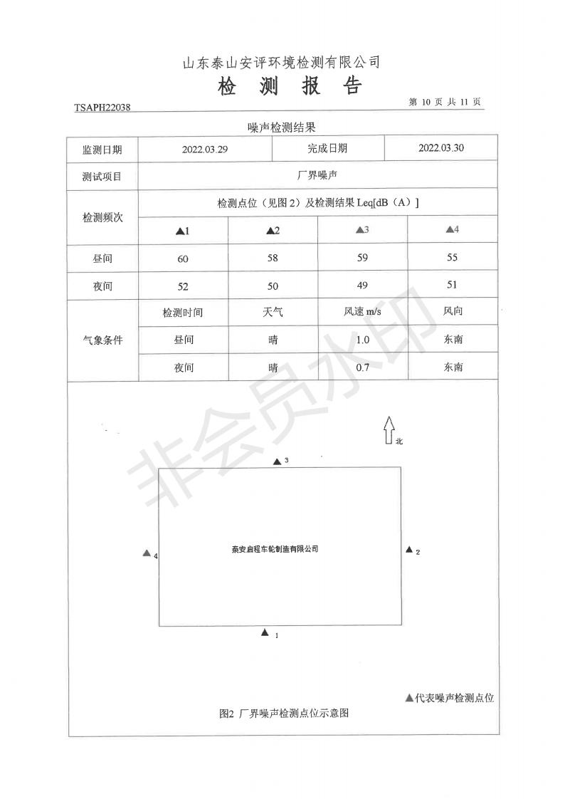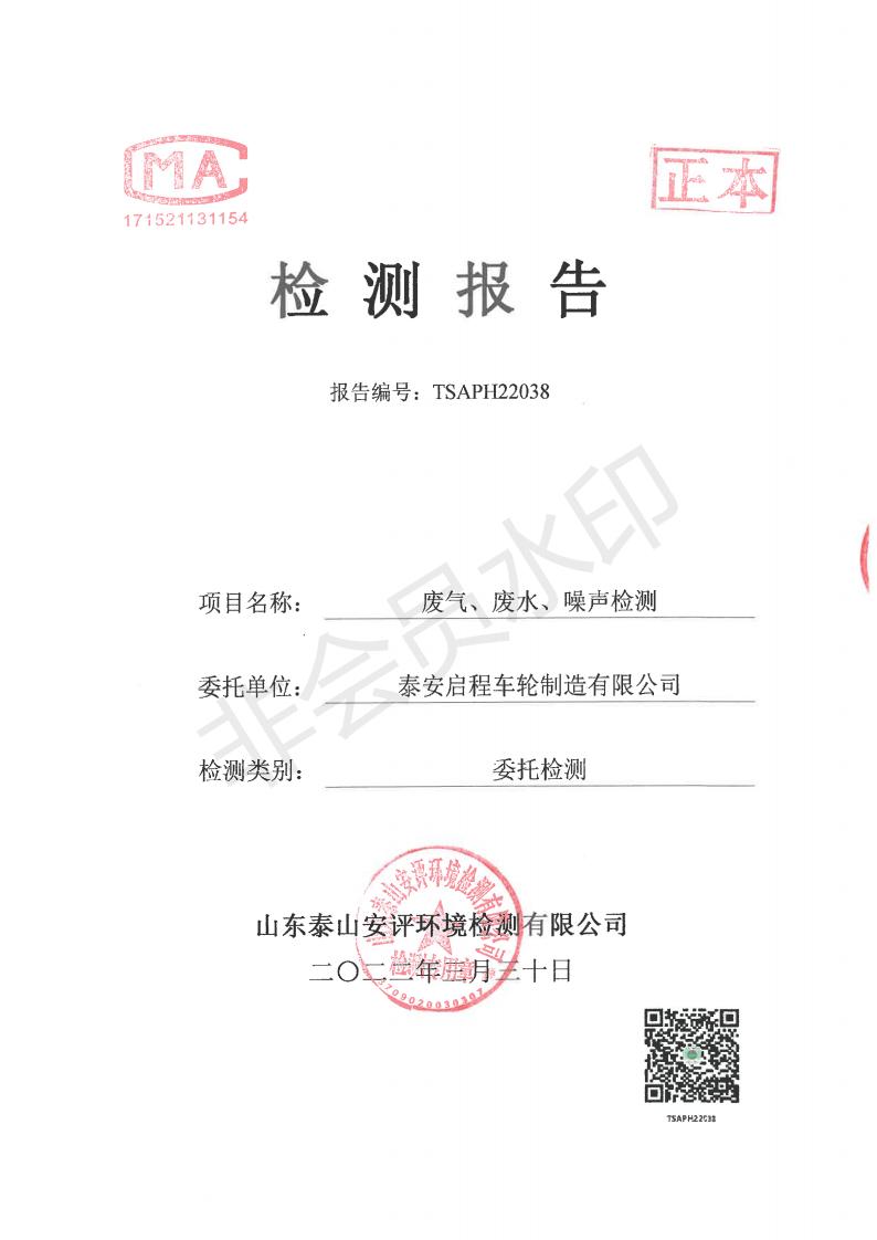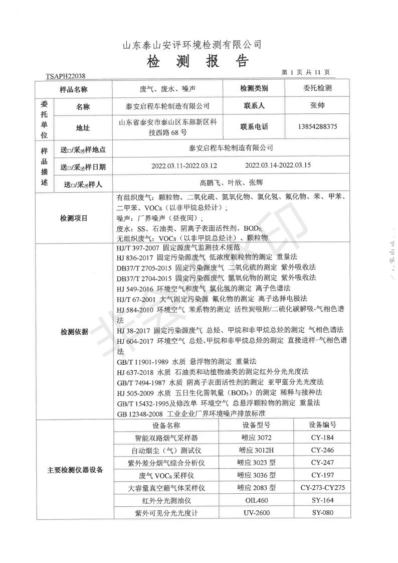 泰安啟程車輪制造有限公司2022年3月份環(huán)境污染物排放檢測報告