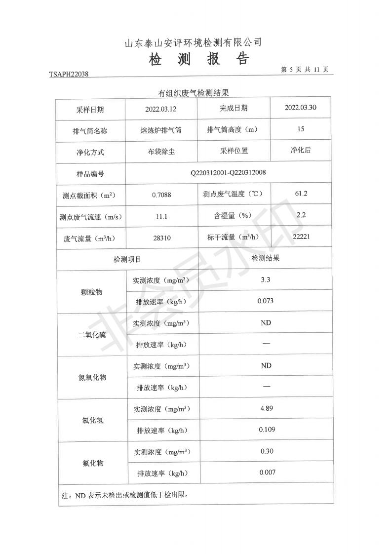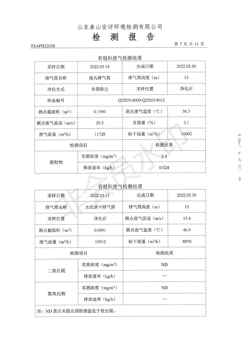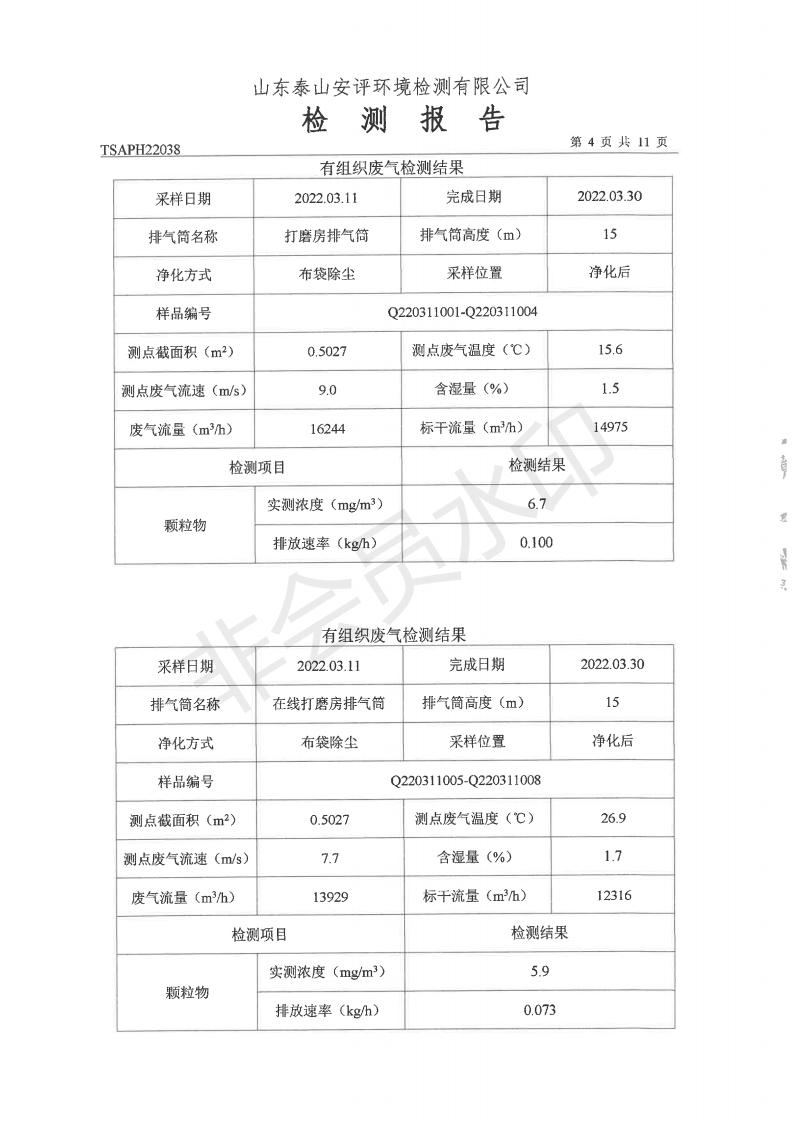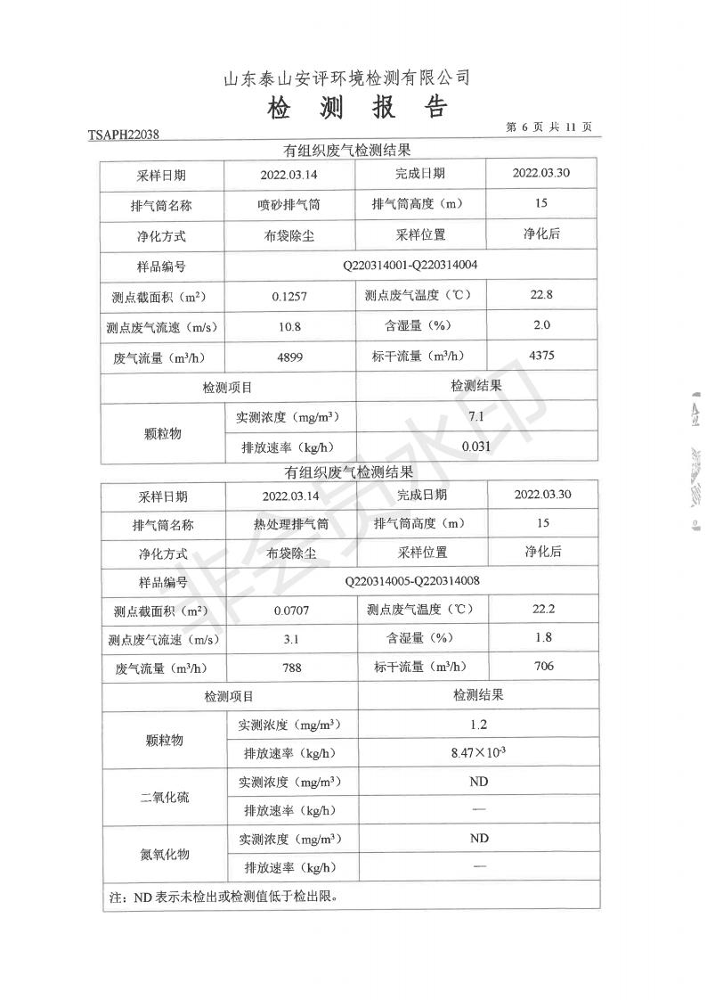 泰安啟程車輪制造有限公司2022年3月份環(huán)境污染物排放檢測報告