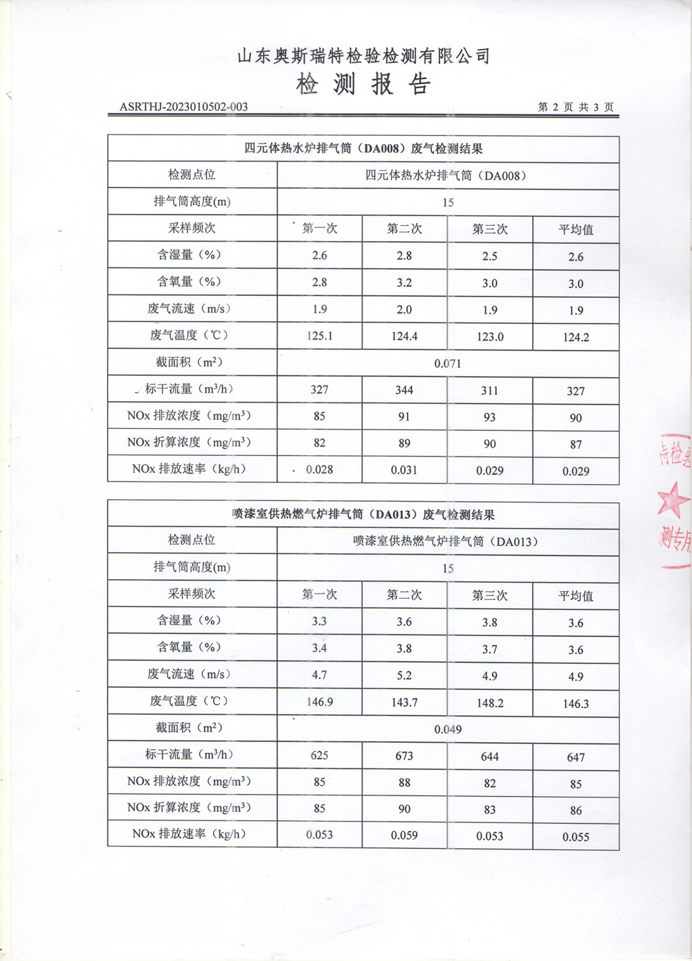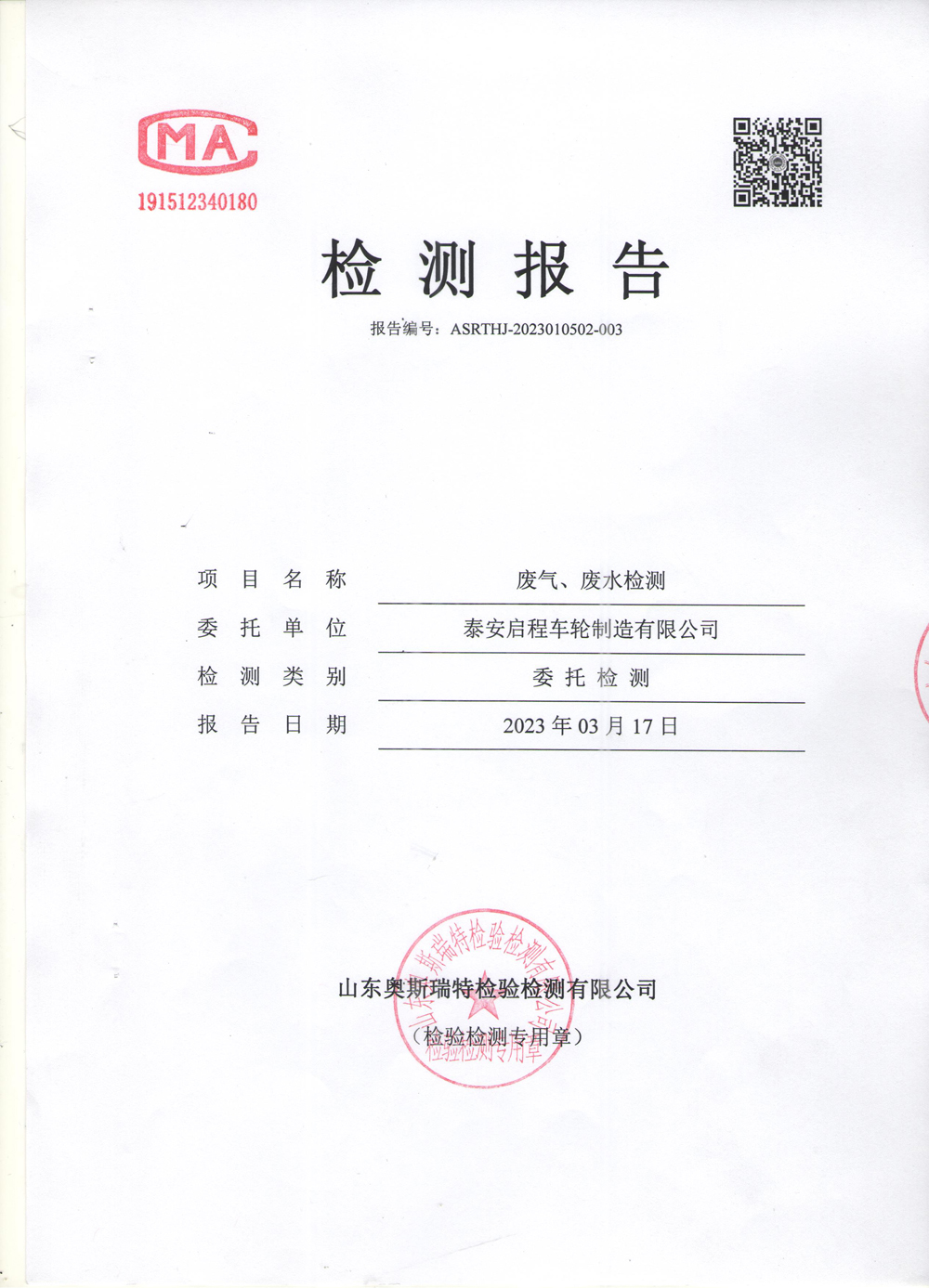 泰安啟程車輪制造有限公司2023年3月份環(huán)境污染物排放檢測(cè)報(bào)告