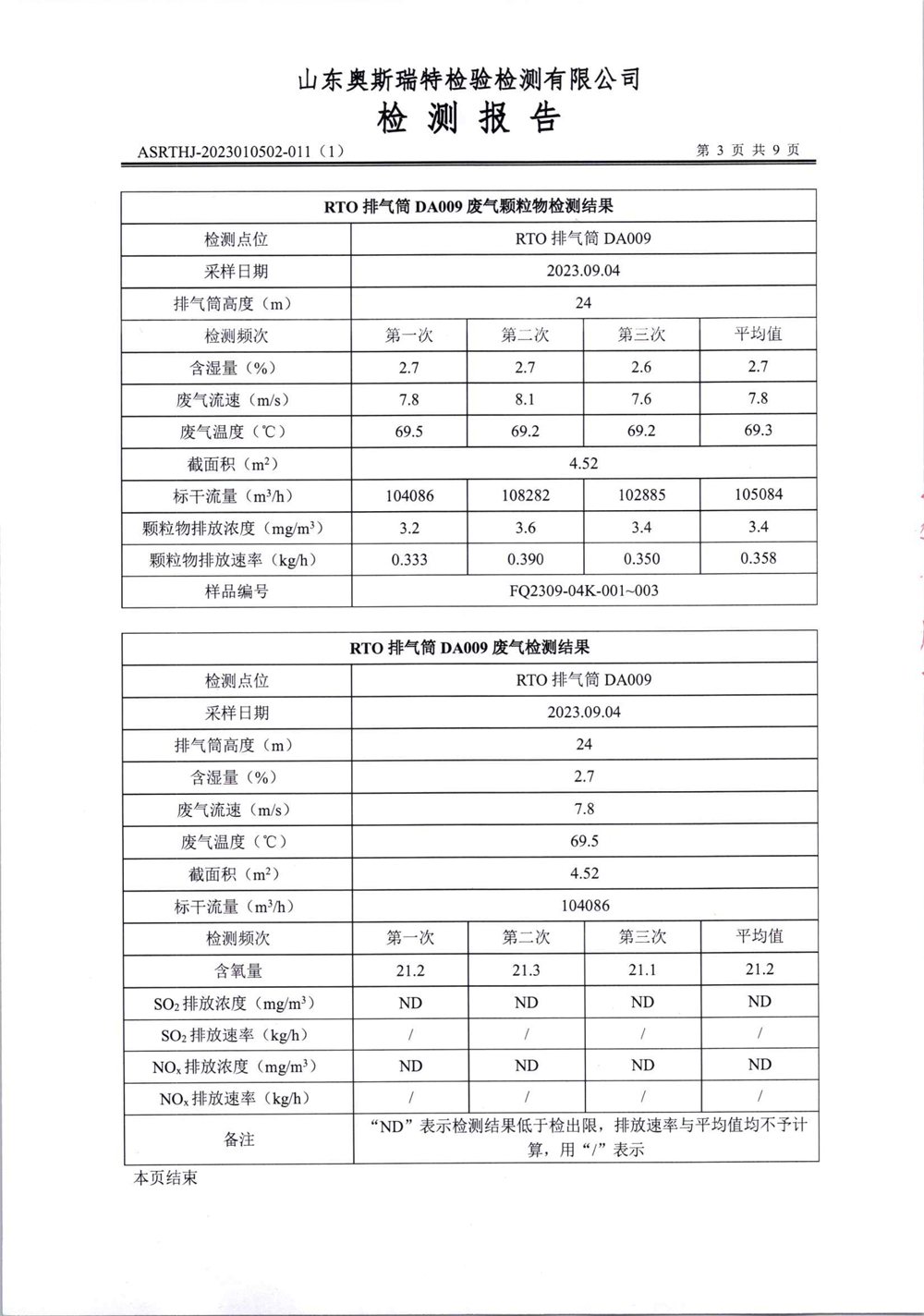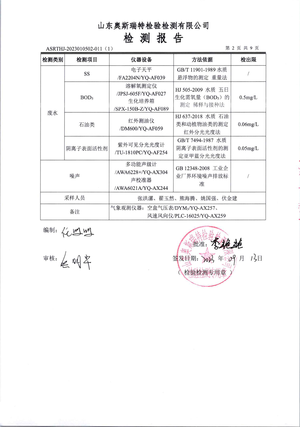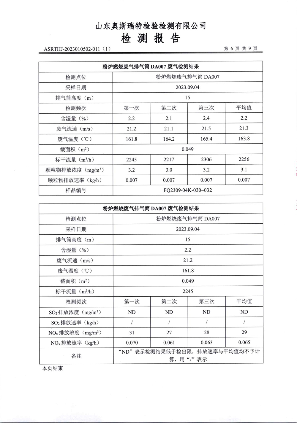 泰安啟程車輪制造有限公司2023年9月份環(huán)境污染物排放檢測報告