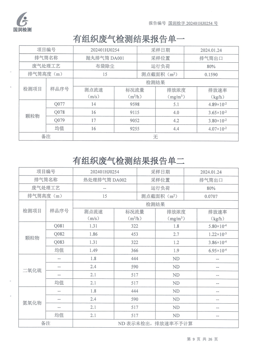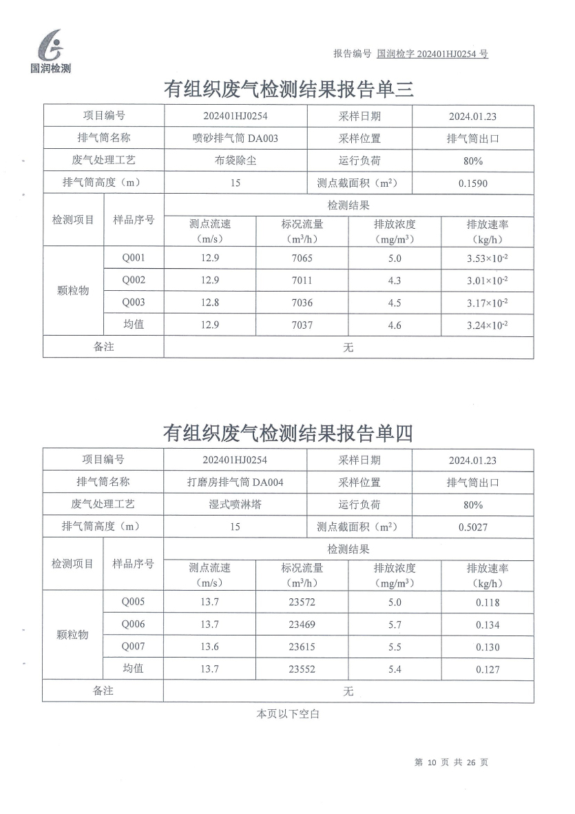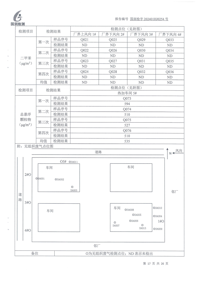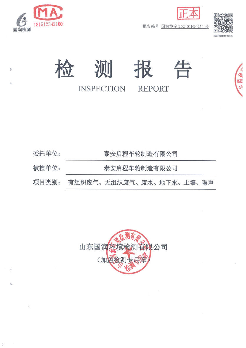 泰安啟程車(chē)輪制造有限公司2024年1月份環(huán)境污染物排放檢測(cè)報(bào)告