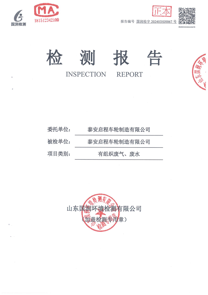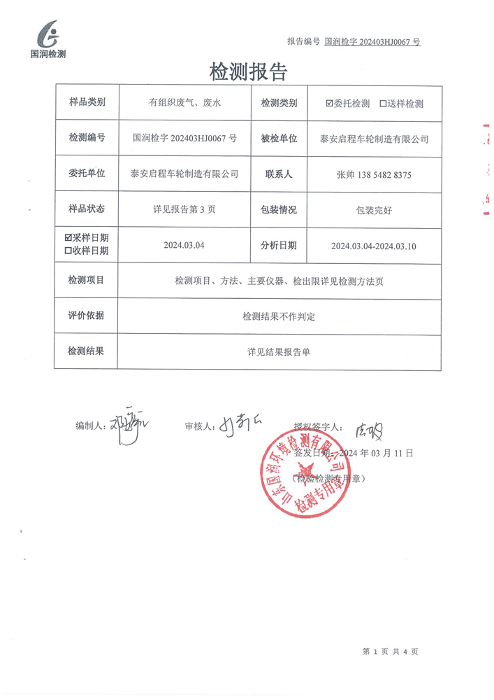 泰安啟程車輪制造有限公司2024年3月份環(huán)境污染物排放檢測(cè)報(bào)告