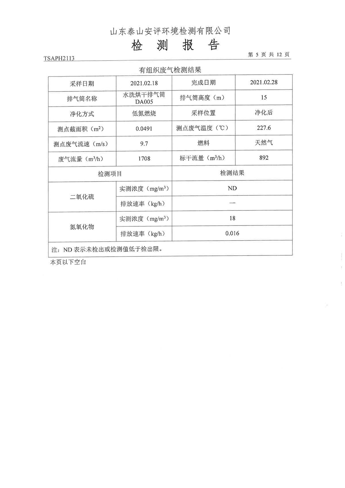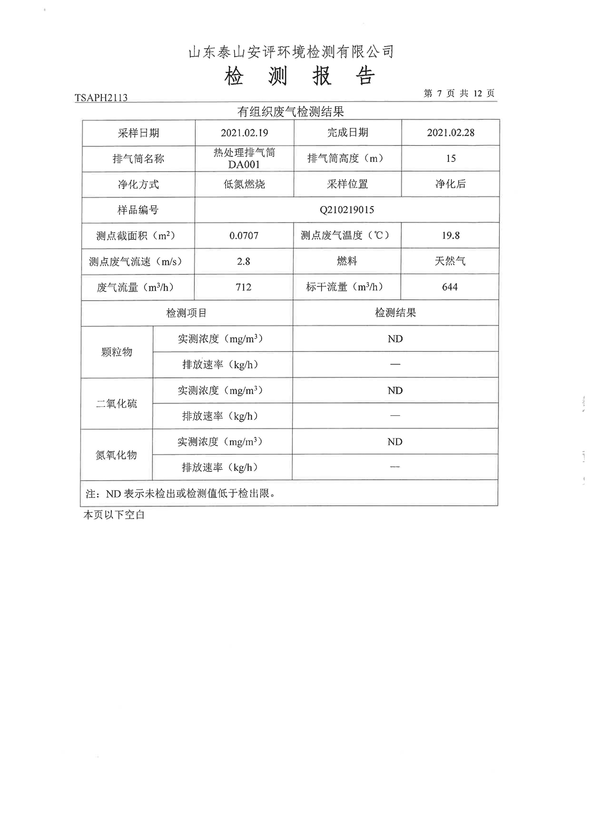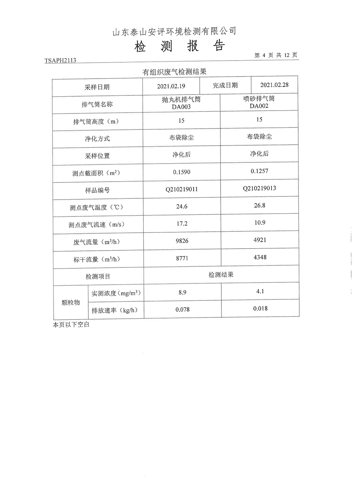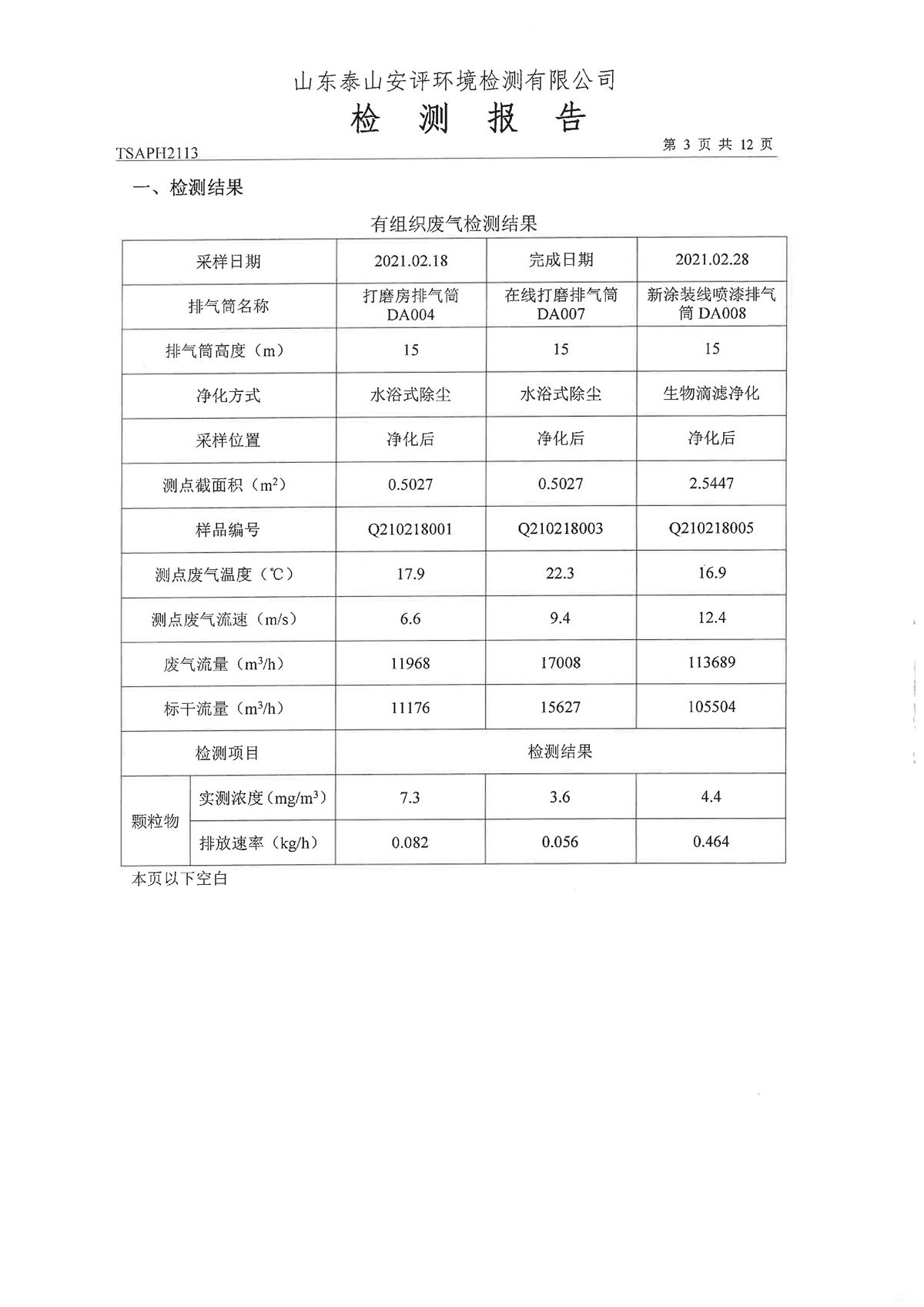 泰安啟程車輪制造有限公司2021年2月份環(huán)境污染物排放檢測報(bào)告